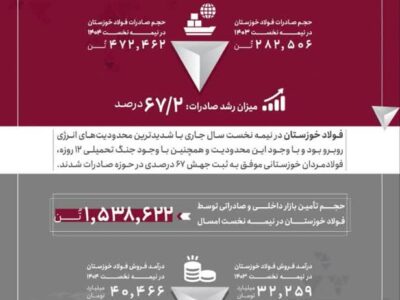 شرکت فولاد خوزستان در نیمه نخست سال ۱۴۰۴ با وجود تحمل شدیدترین محدودیتهای برق و همچنین جنگ تحمیلی ۱۲ روزه، عملکردی درخشان از خود به جای گذاشت و موفق شد جهشی کمنظیر در حوزه صادرات به ثبت برساند. حجم صادرات محصولات این شرکت در نیمه نخست سال جاری به ۴۷۲ هزار و ۴۶۲ تن رسید که در مقایسه با ۲۸۲ هزار و ۵۰۶ تن مدت مشابه سال گذشته، نشاندهنده جهشی ۶۷/۲ درصدی است.