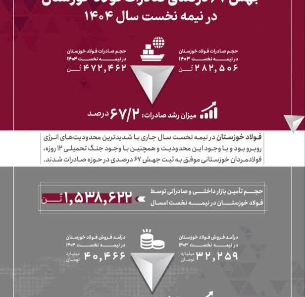 جهش ۶۷ درصدی صادرات فولاد خوزستان در نیمه نخست سال ۱۴۰۴